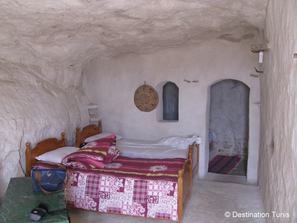 Il s’agit du gîte de l’Asnaped à Douirat. De magnifiques troglodytes, avec une vue époustouflante au couché de soleil, dans un calme assourdissant ! Avec en prime un très bon repas !